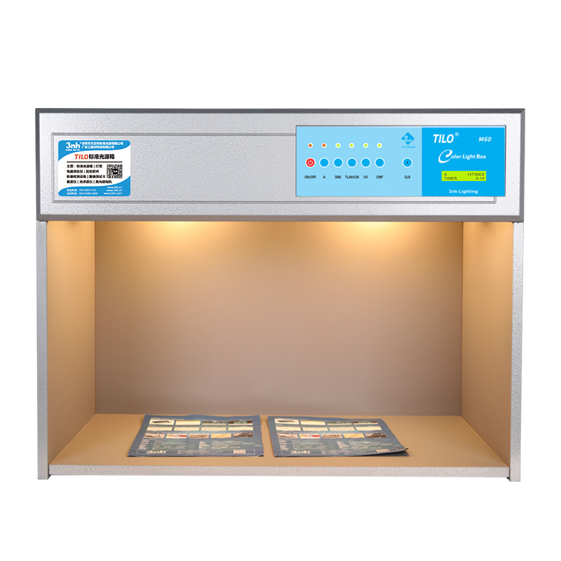M60 color light booth is equipped with 5 light sources. Colors appear differently under different lighting sources. To avoid/reduce the assessment error when performing color contrast, we can make use of a Light Booth / Viewing Booth/Color Light Box to simulate different light sources to obtain an objective assessment of color and color difference, anytime, anywhere.